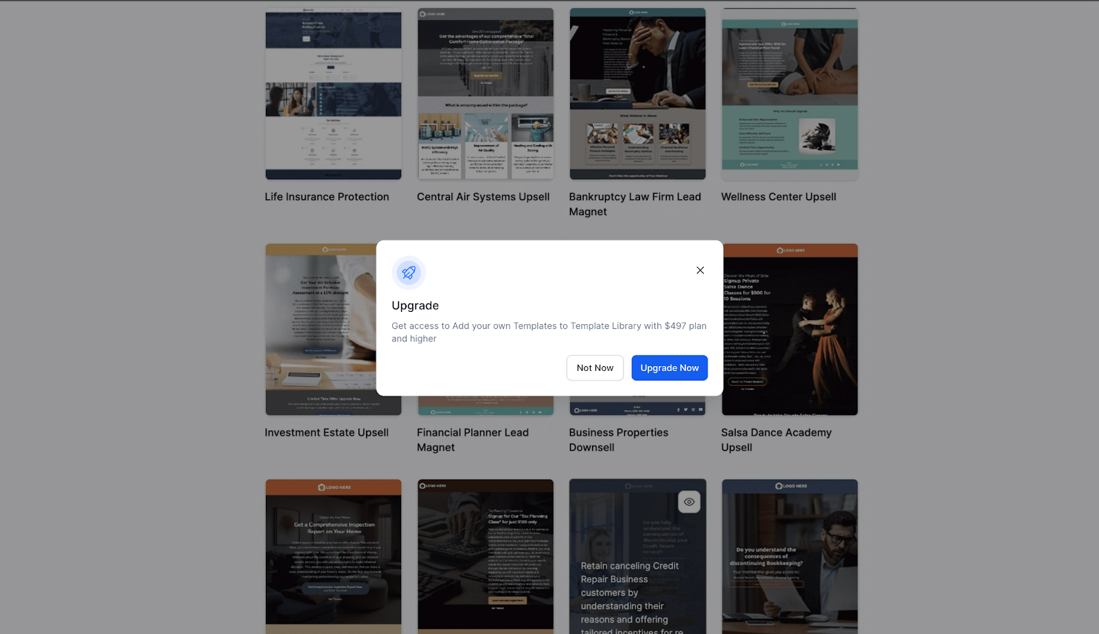 When you are on a $497 plan, please continue with the steps on the link to ensure you can upload templates in the template library.