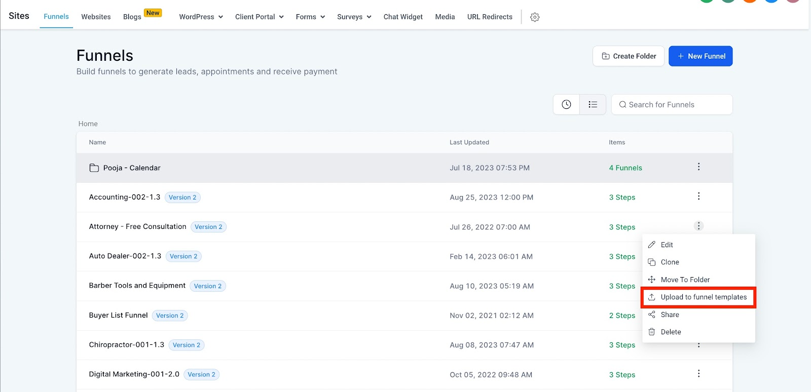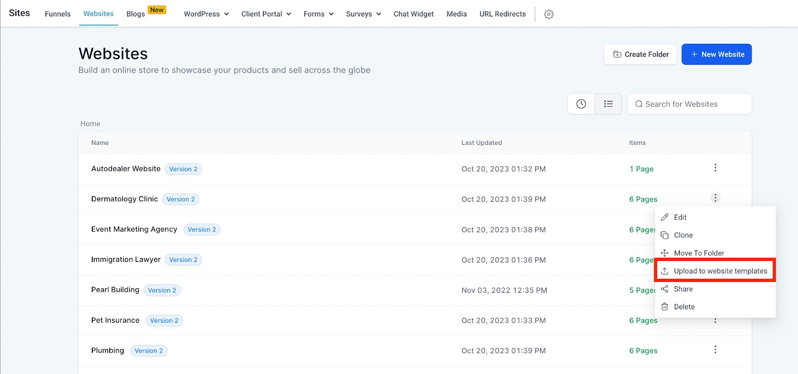 Option 1: 1. Go to the template (Email, Funnel, Forms, Surveys, Websites, Social Planner)