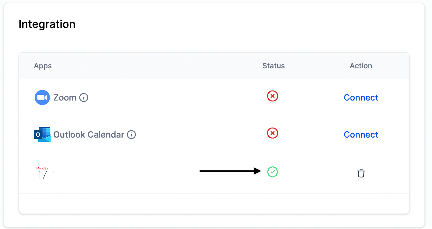 - You should see the option with iCloud Calendar > Click on Connect