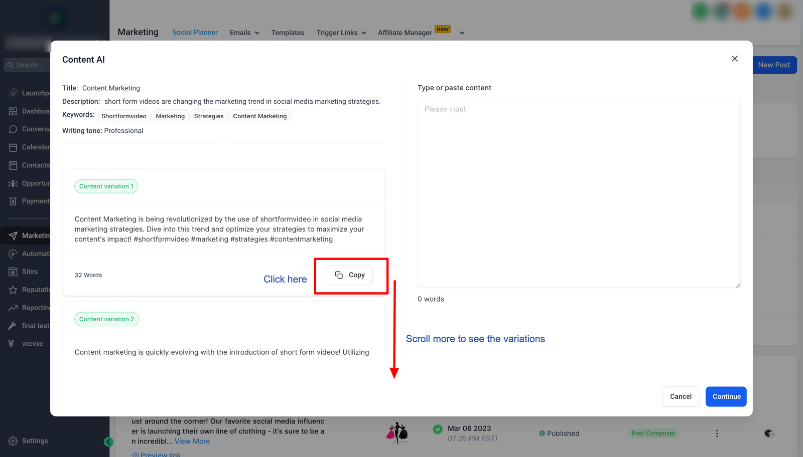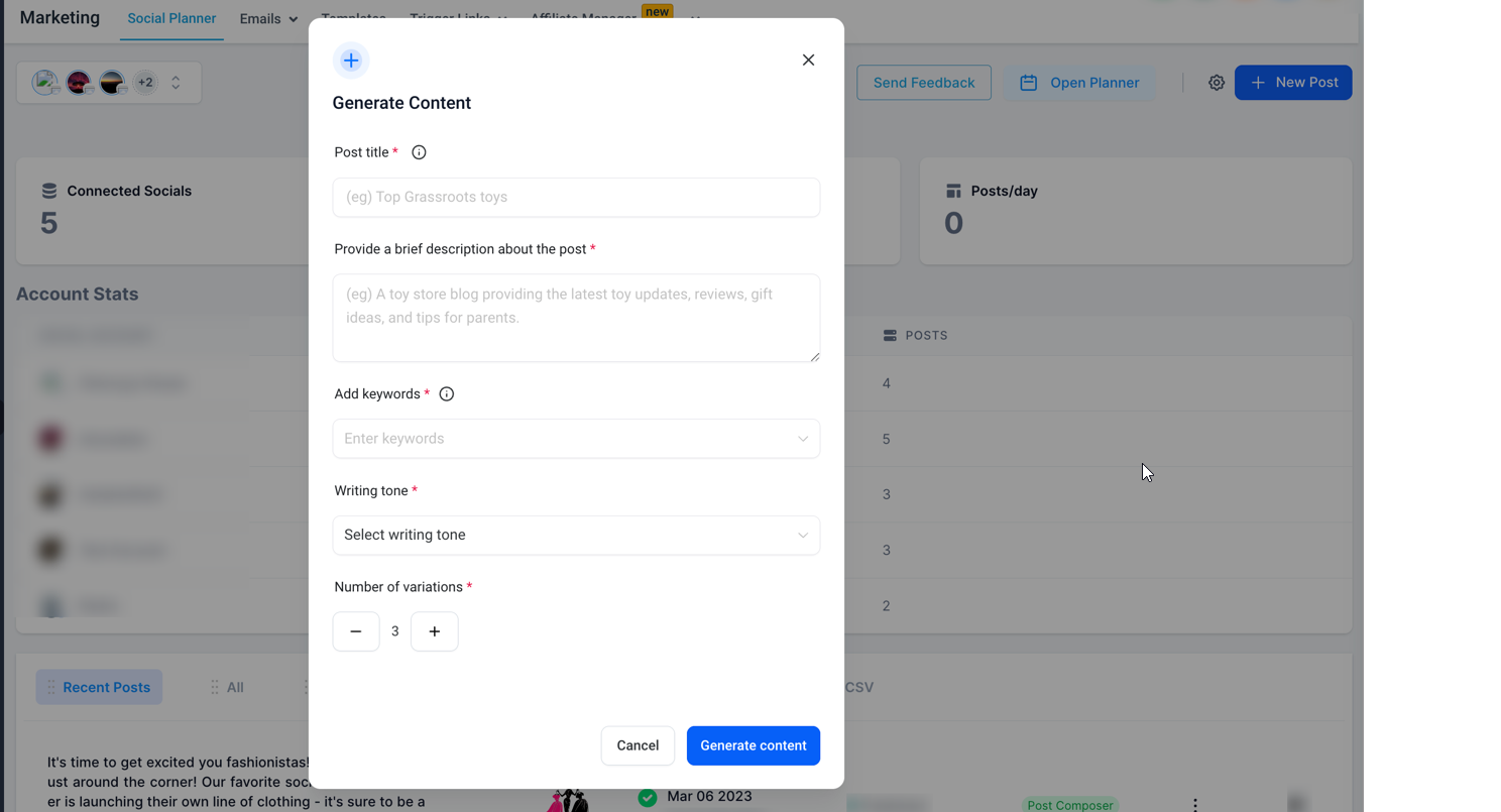 AI-powered Content AI is available for Social Planner, followed by it will be everywhere for generating AI-powered content.