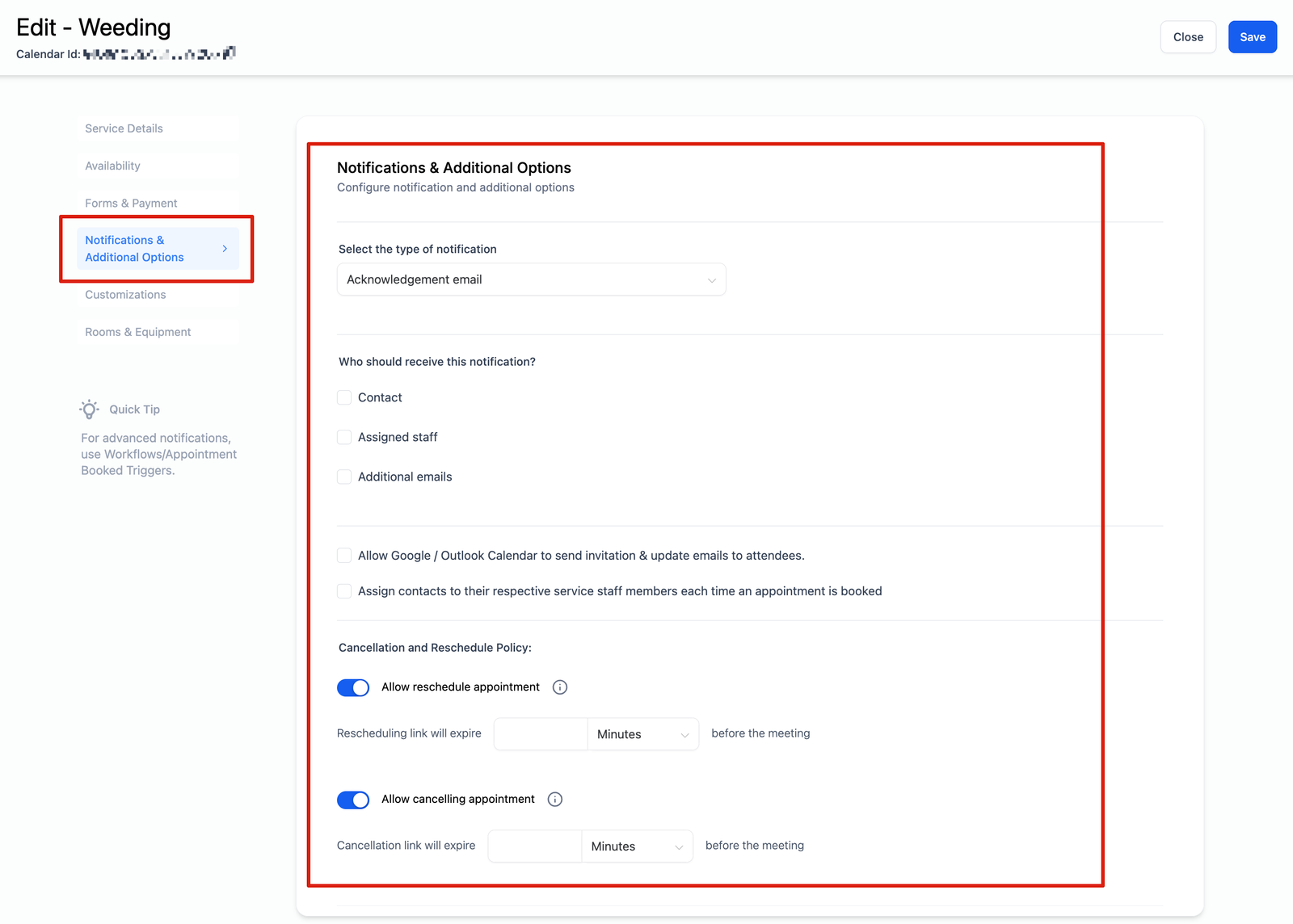 - Service Description: Add a brief description to help users understand the purpose of the calendar.