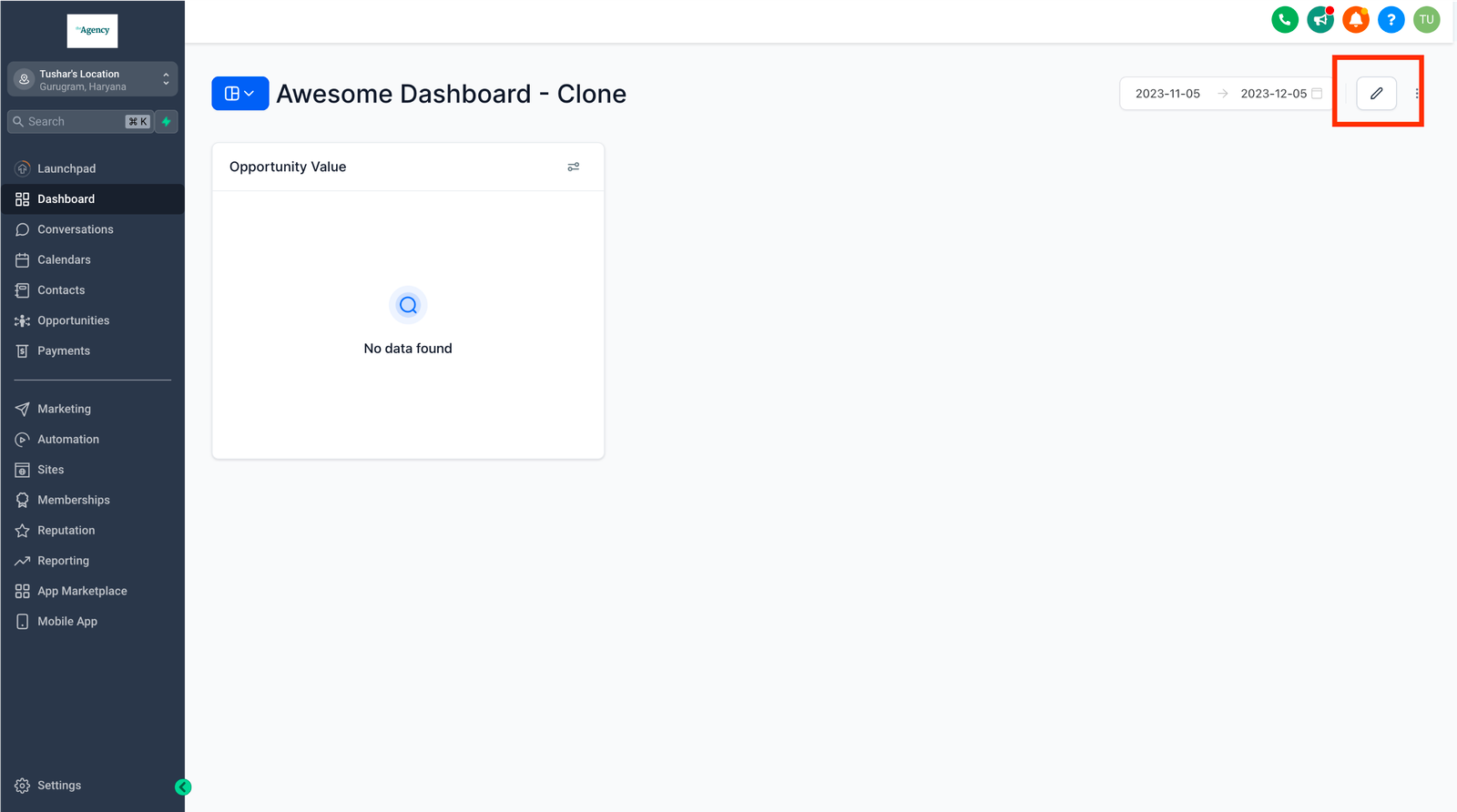 Identify and navigate to the specific dashboard you intend to edit. Note: Only dashboard owners have the authority to edit a dashboard.
