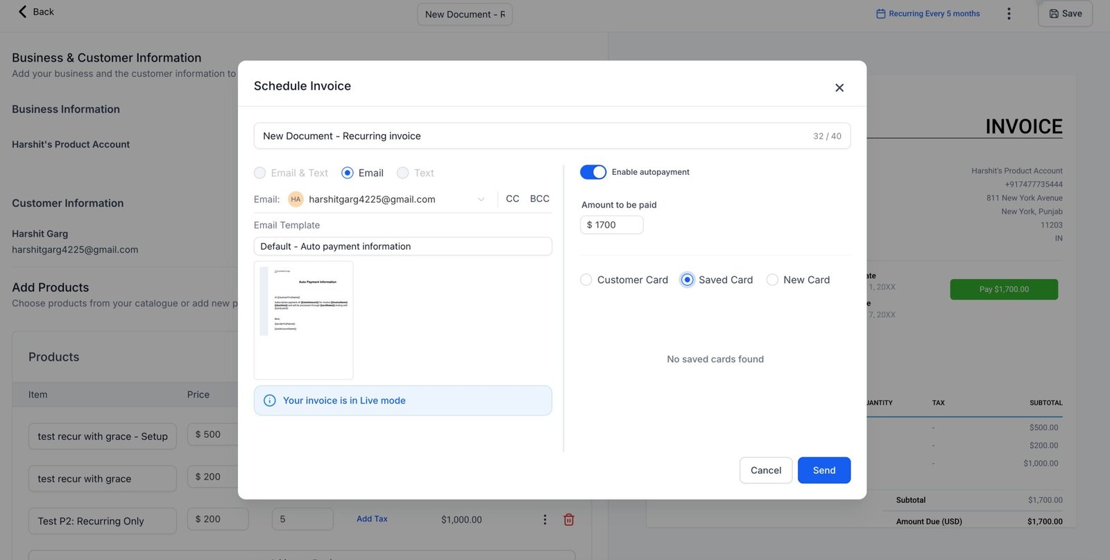 - Automated Email Alerts: When auto-payment is enabled in an edited recurring invoice, it will automatically trigger an email notification to the user.