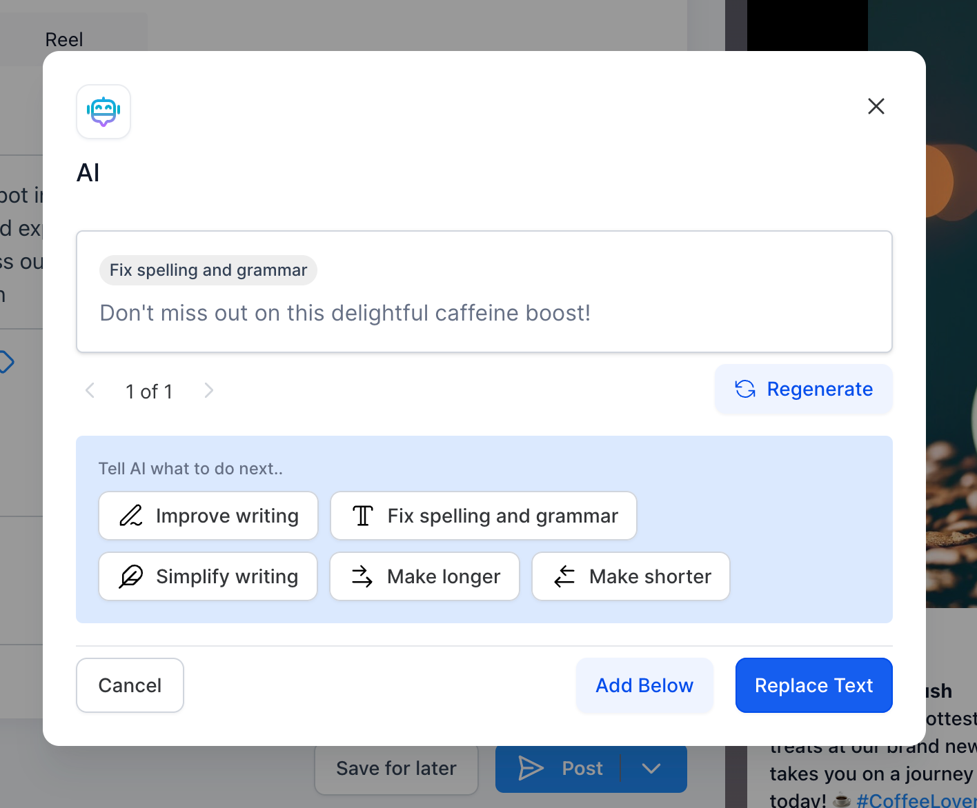 6. You can add the content below the selected or considered text for quick action or you can replace the text too.