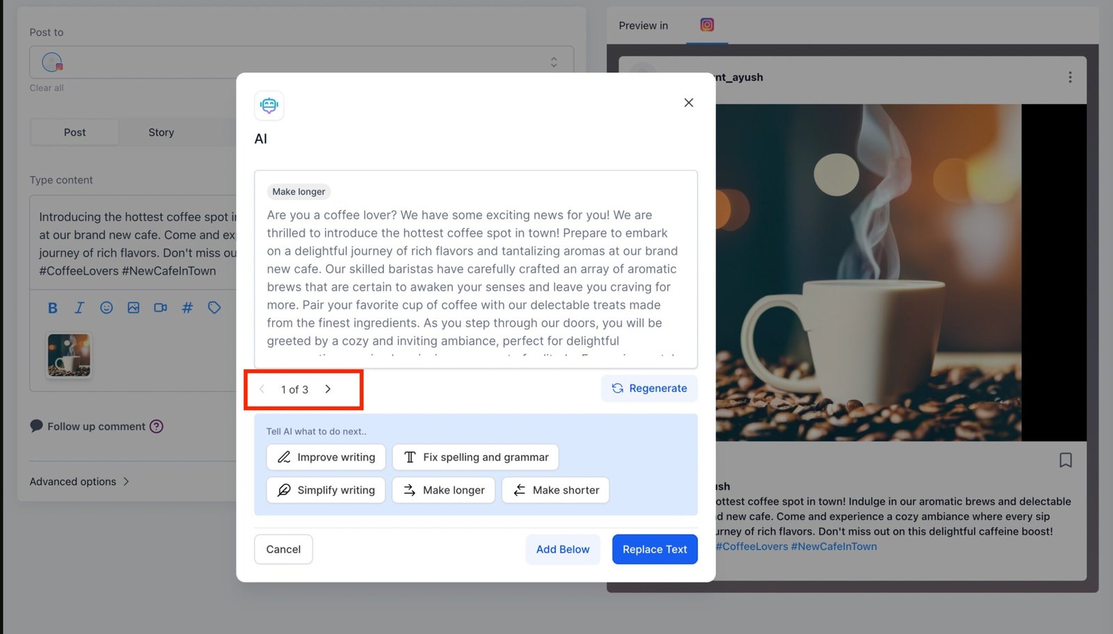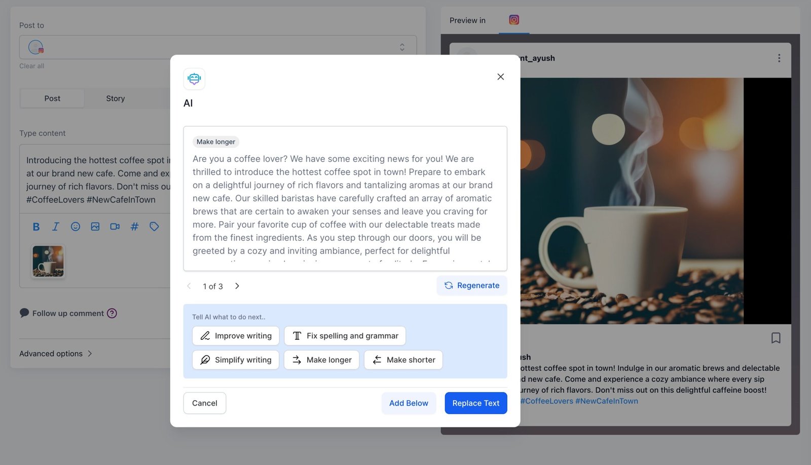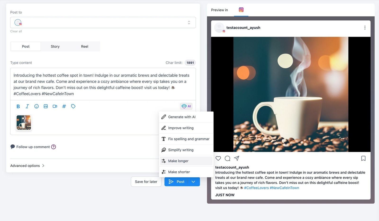 - When you create new post, select the social accounts.