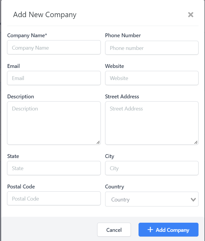 The following fields are to be filled out when creating a Company: