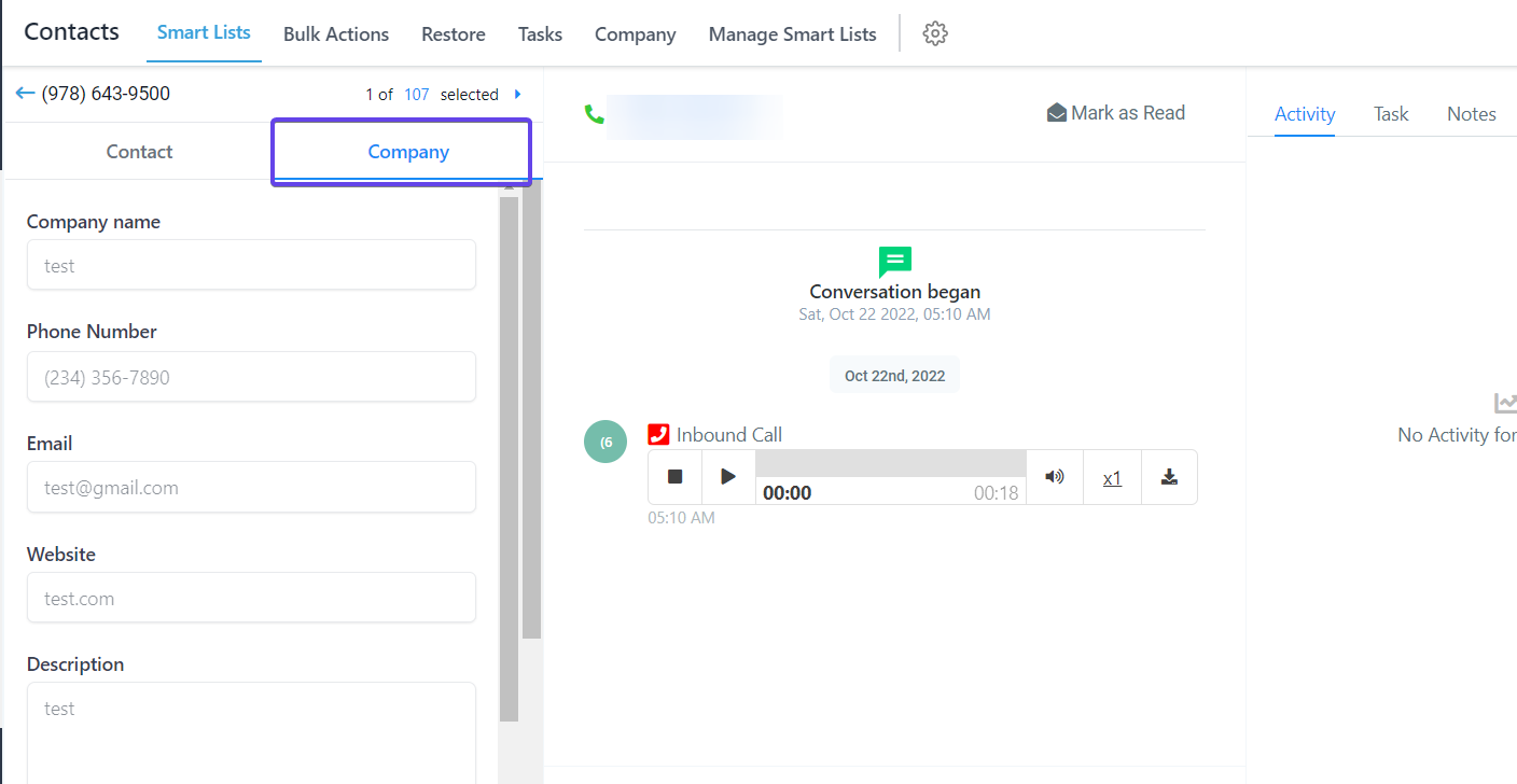The Company Object feature is the ability to create a new entity called “Company” and map contacts under them. This can also be looked at as a grouping mechanism for a list of contacts, where a list of contacts can be mapped to a company and their consolidated activities can be tracked.