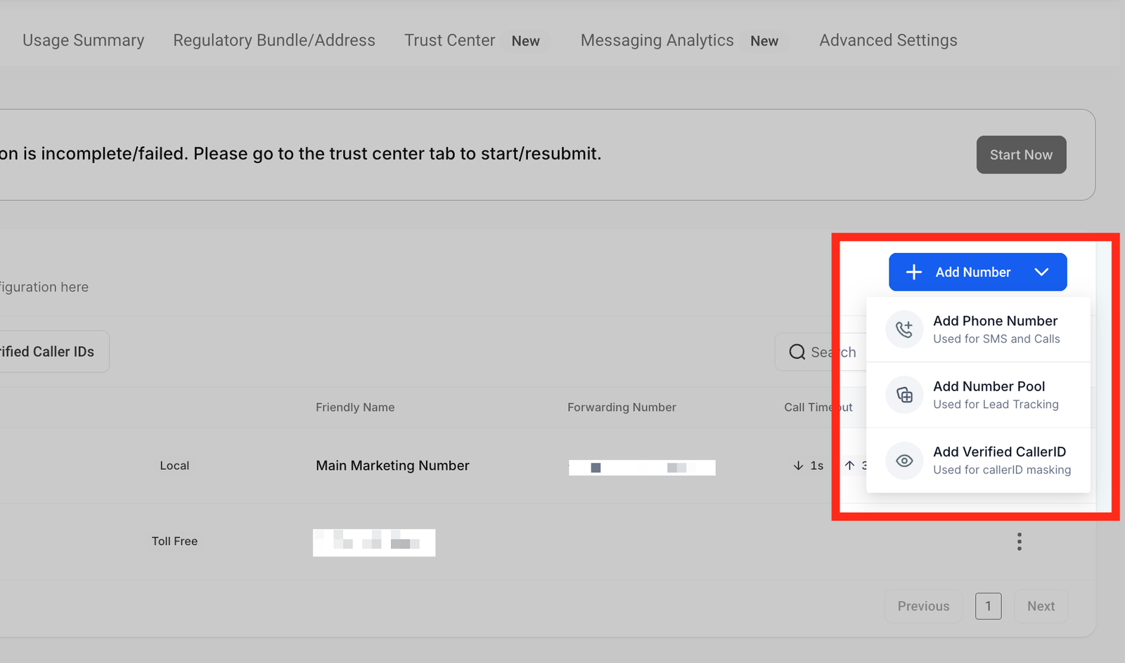 If your sub-account is outside of the USA and Canada, we highly recommend that you complete the regulatory bundle/address registration for the best telephone experience.