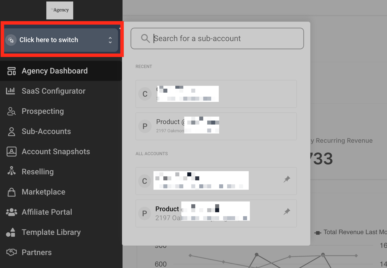 Step 2: Once you are in the sub-account, click on Settings