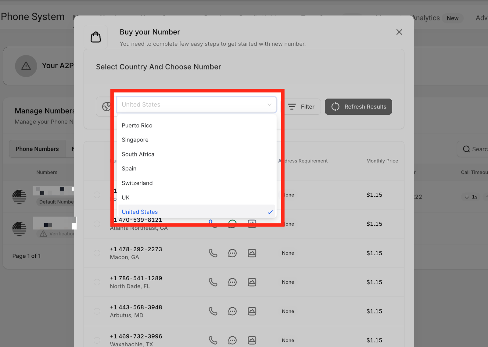 Step 5: Select the Country for which you want to buy the number.