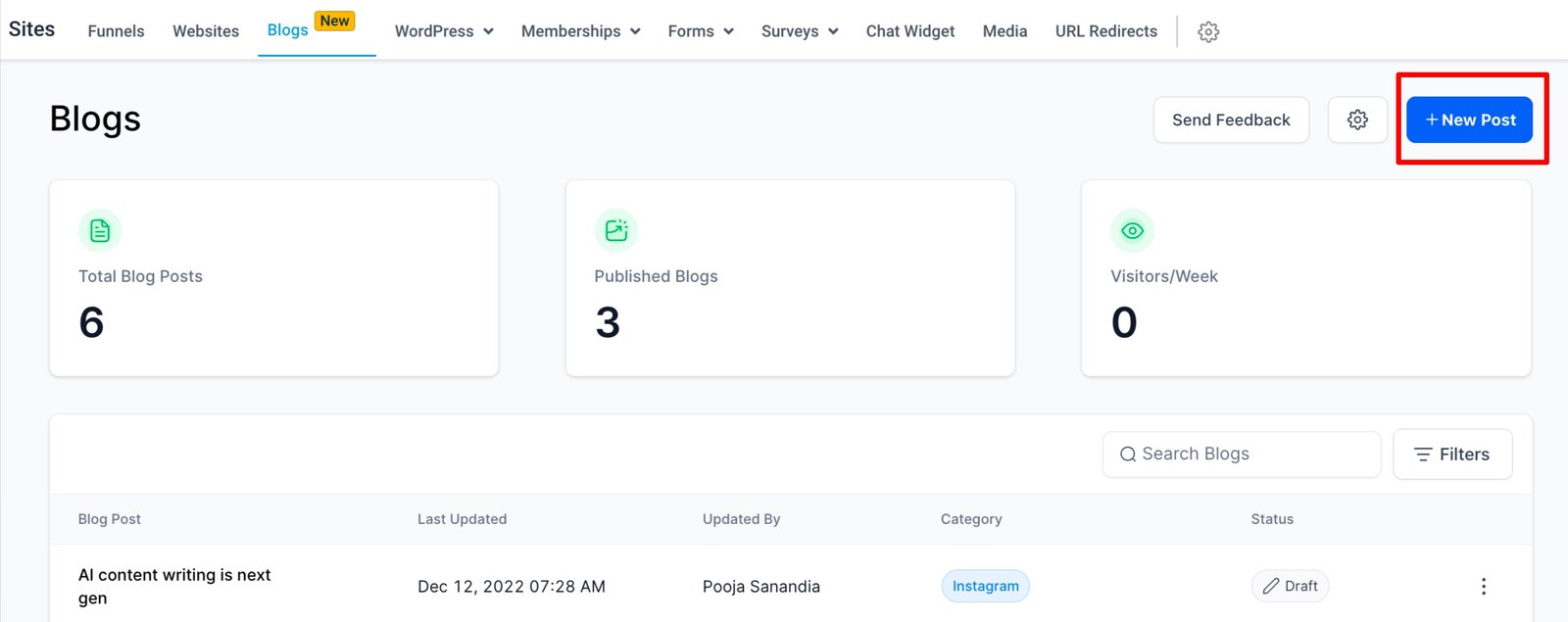 - Click on Create New Blog Post