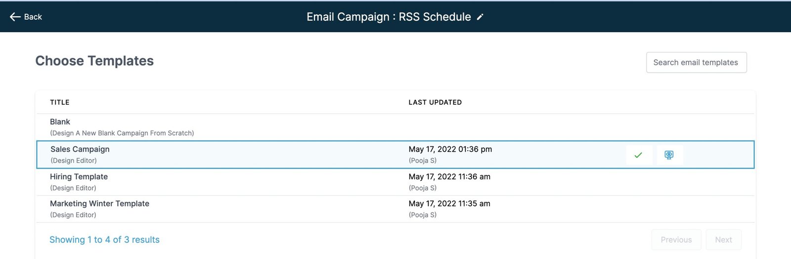 2. Next Step is to select the Email Template which you would like to create a Marketing Email Campaign.