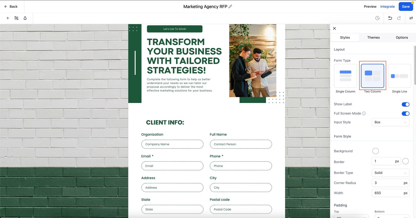 Three Versatile Layout Options: Choose between Single Column, Two Column, and Single Line to best suit your form’s purpose and appearance.