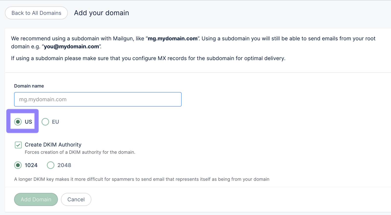 - We can use the same Mailgun API and different domains/subdomains for multiple locations