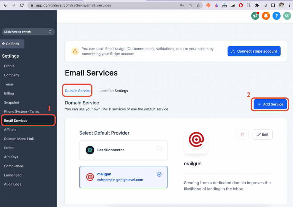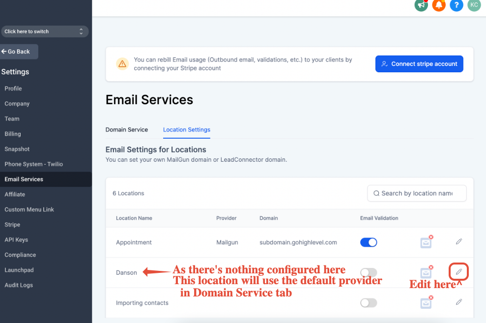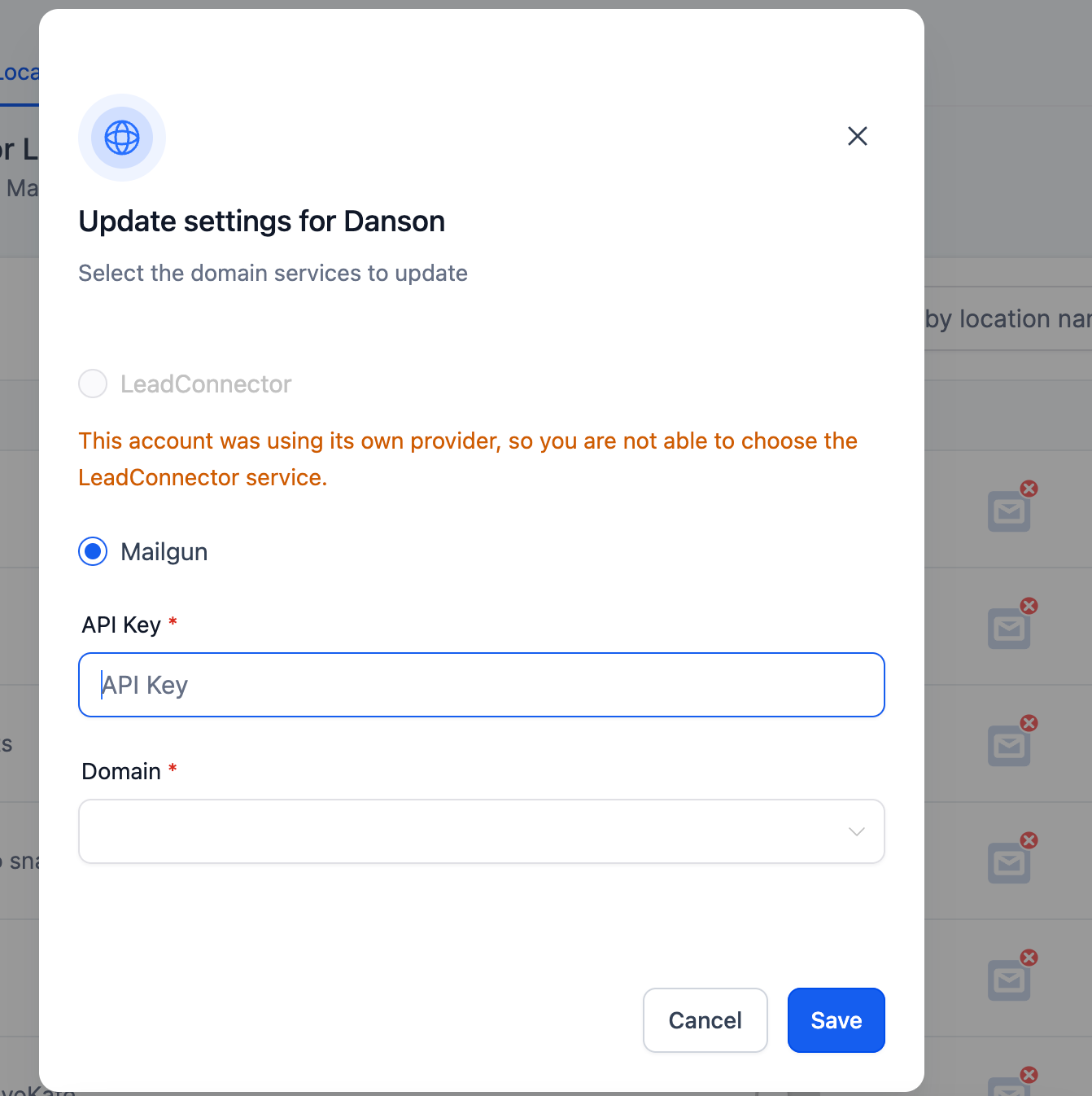 - You can configure each location with your client’s own Mailgun or your mailgun