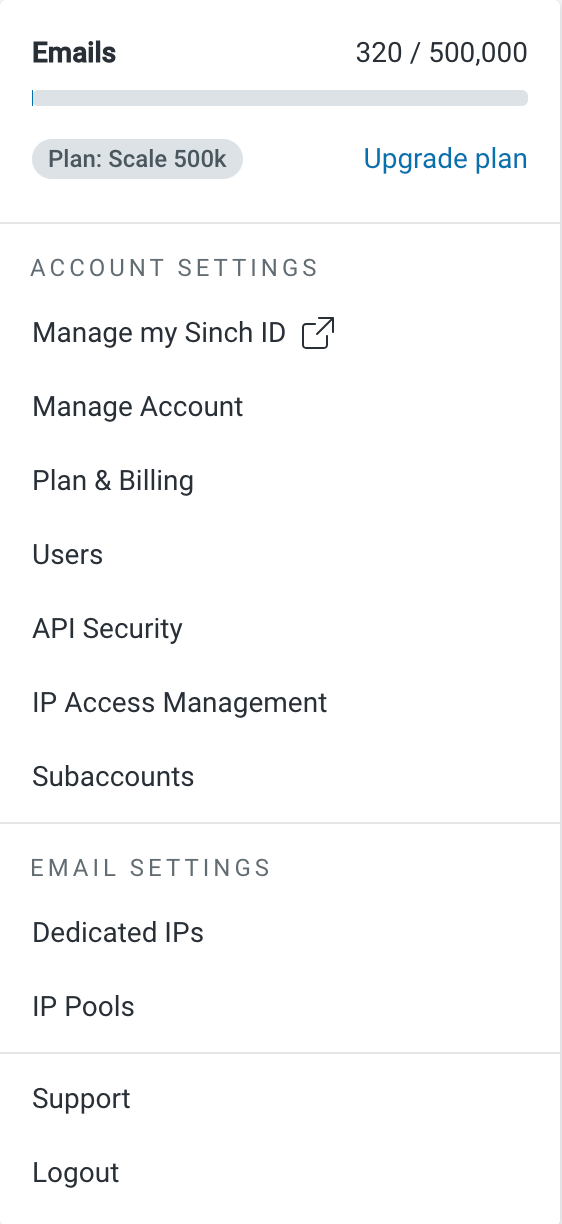 1. In the top-right corner of the Mailgun Control Panel, click your Profile Menu to expand the drop-down list of options.