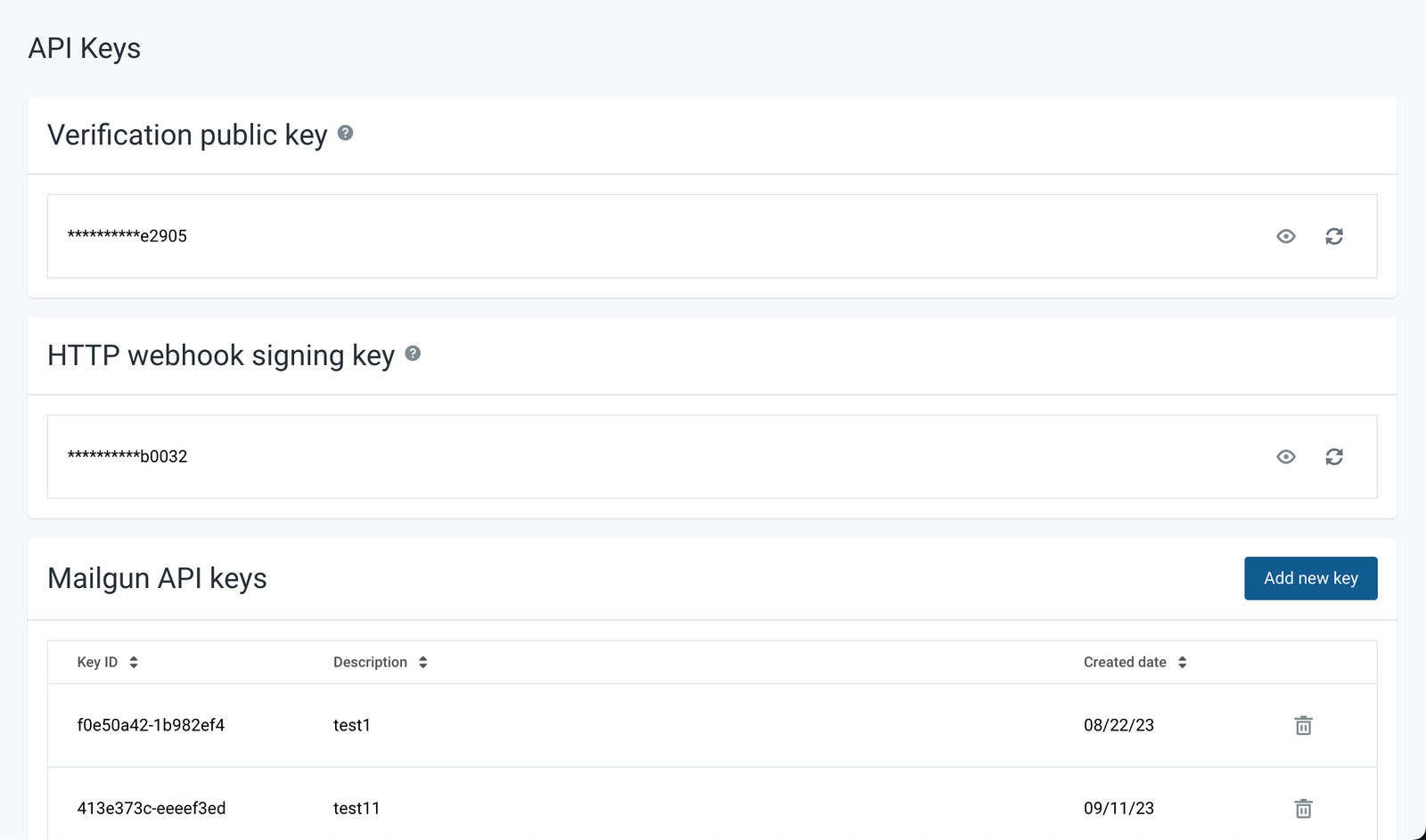 Paste HTTP webhook signing key and add ass API key, select the Domain here, click save