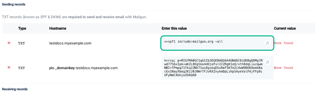 paste the following data mailgun.org