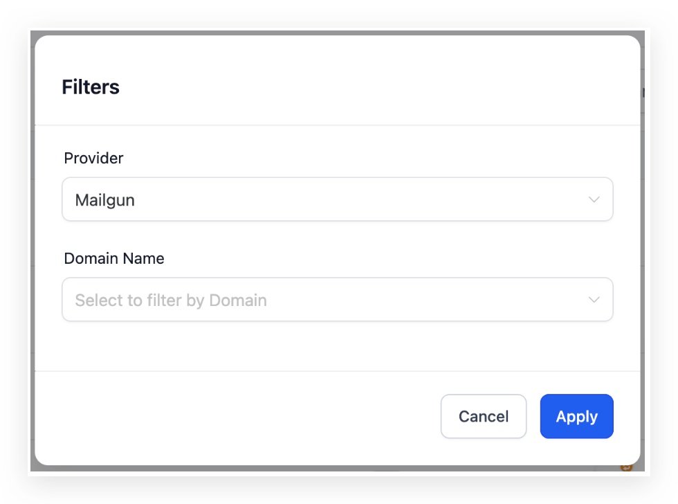 - You have the option to filter by Mailgun dedicated domain.