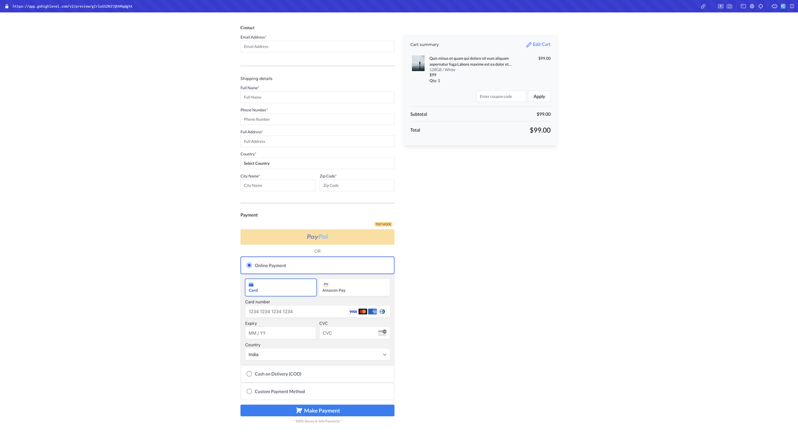 2. Choose a Payment Method: You can either select Cash on Delivery or create a Custom Payment Method.