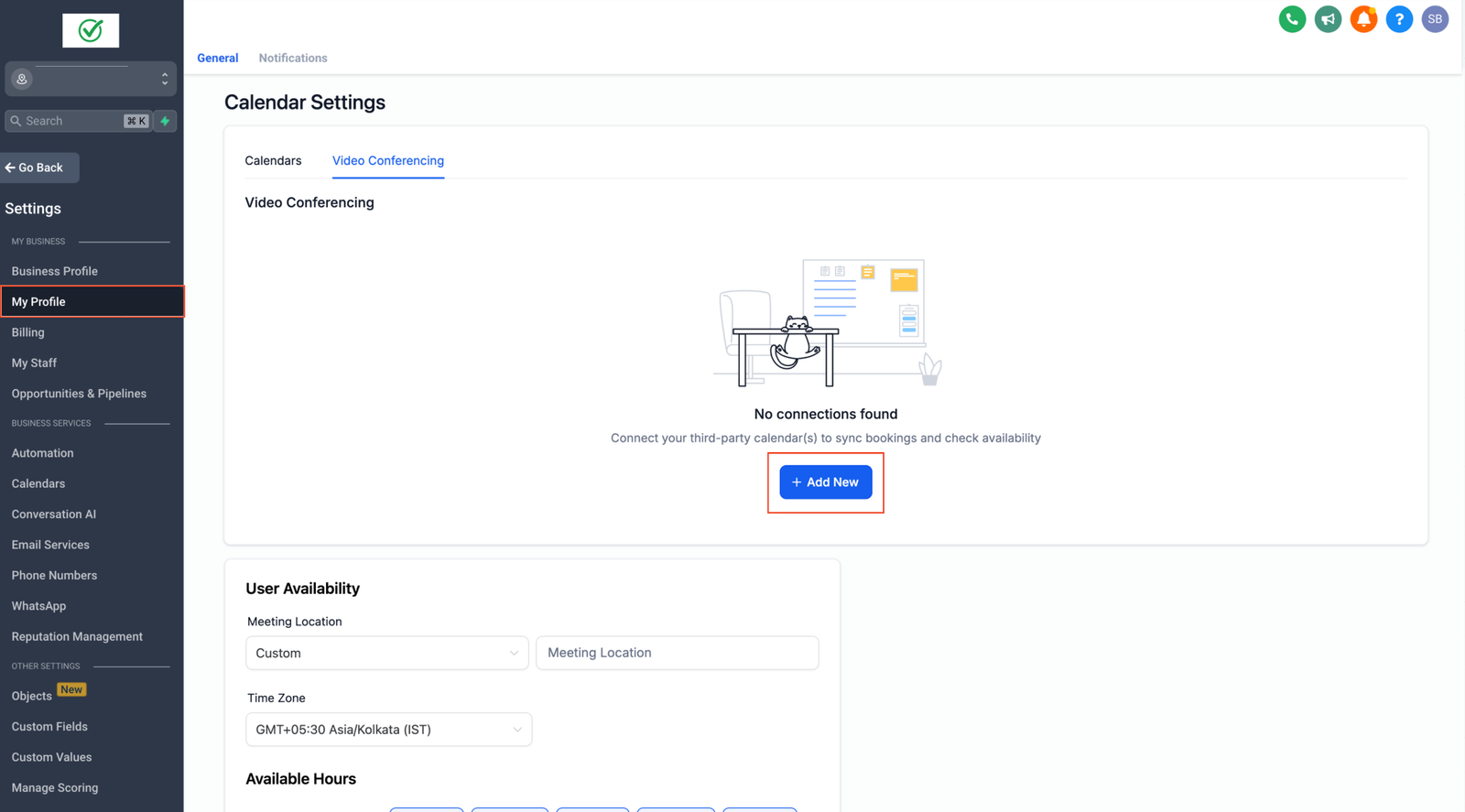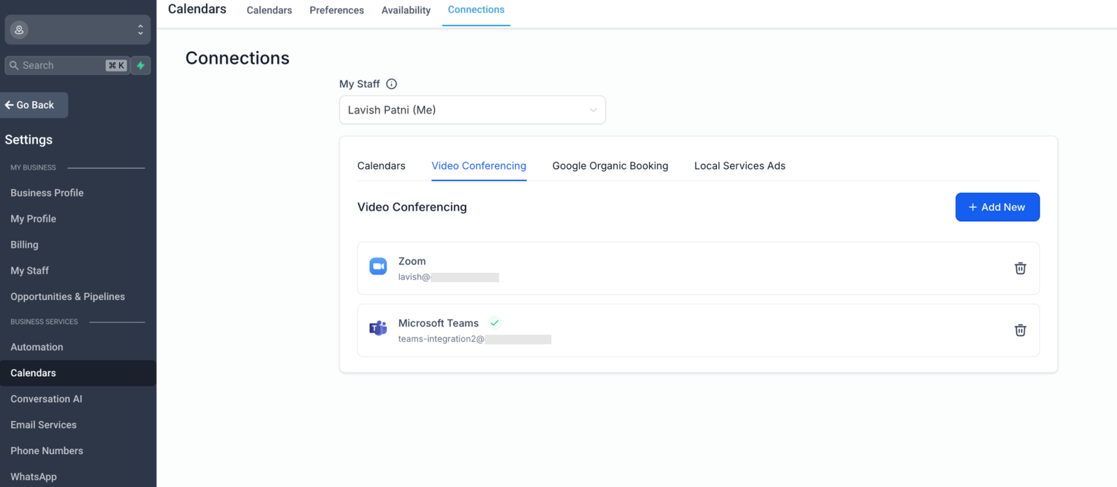 2. Under Video Conferencing connections, click Add New.