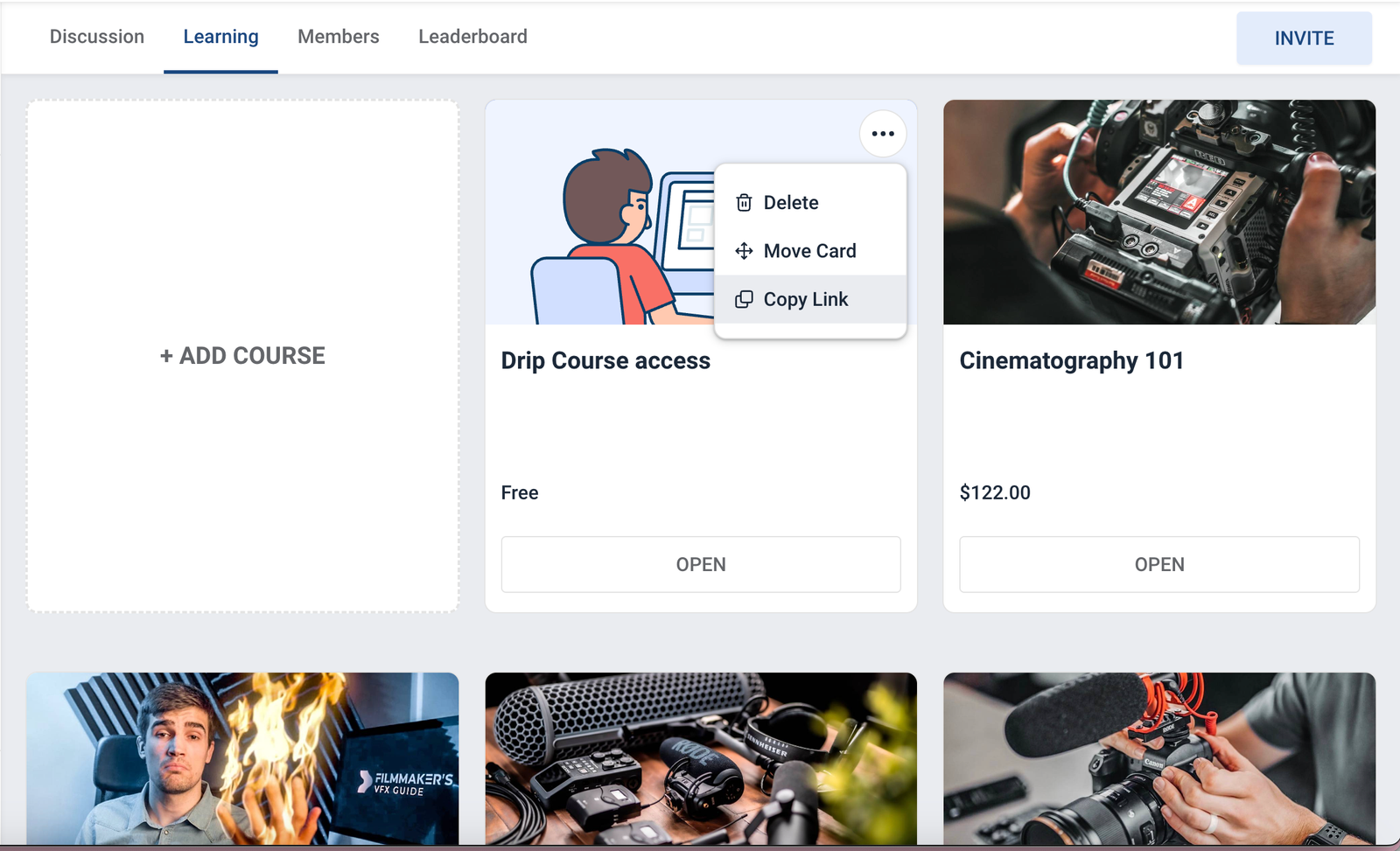- Copy Course Link: Use the “Copy Link” button (from 3 dots) to generate a shareable link to your course. This can be used for promotion on social media, email newsletters, and other marketing channels.