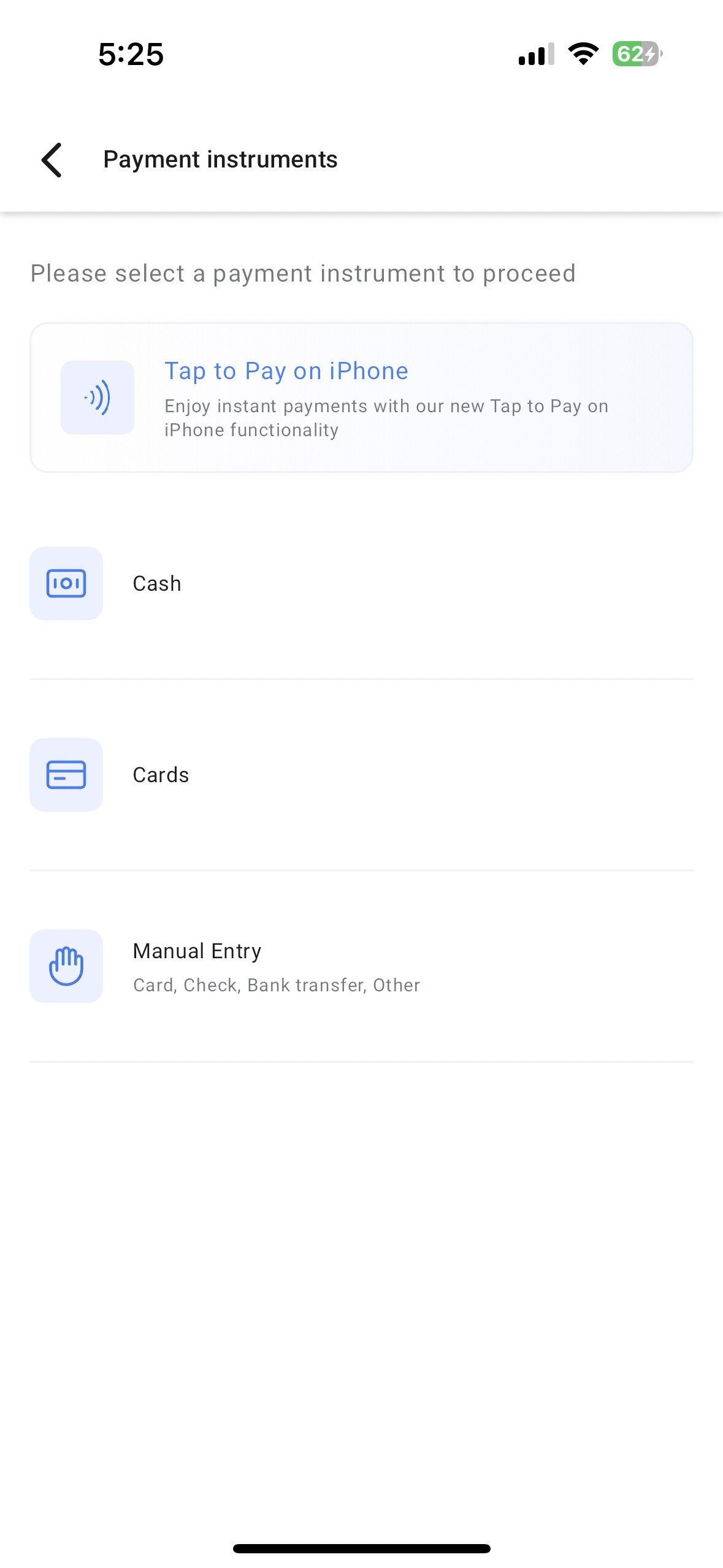 - Select Tap to Pay or your preferred method to record payment and you’re good to go!
