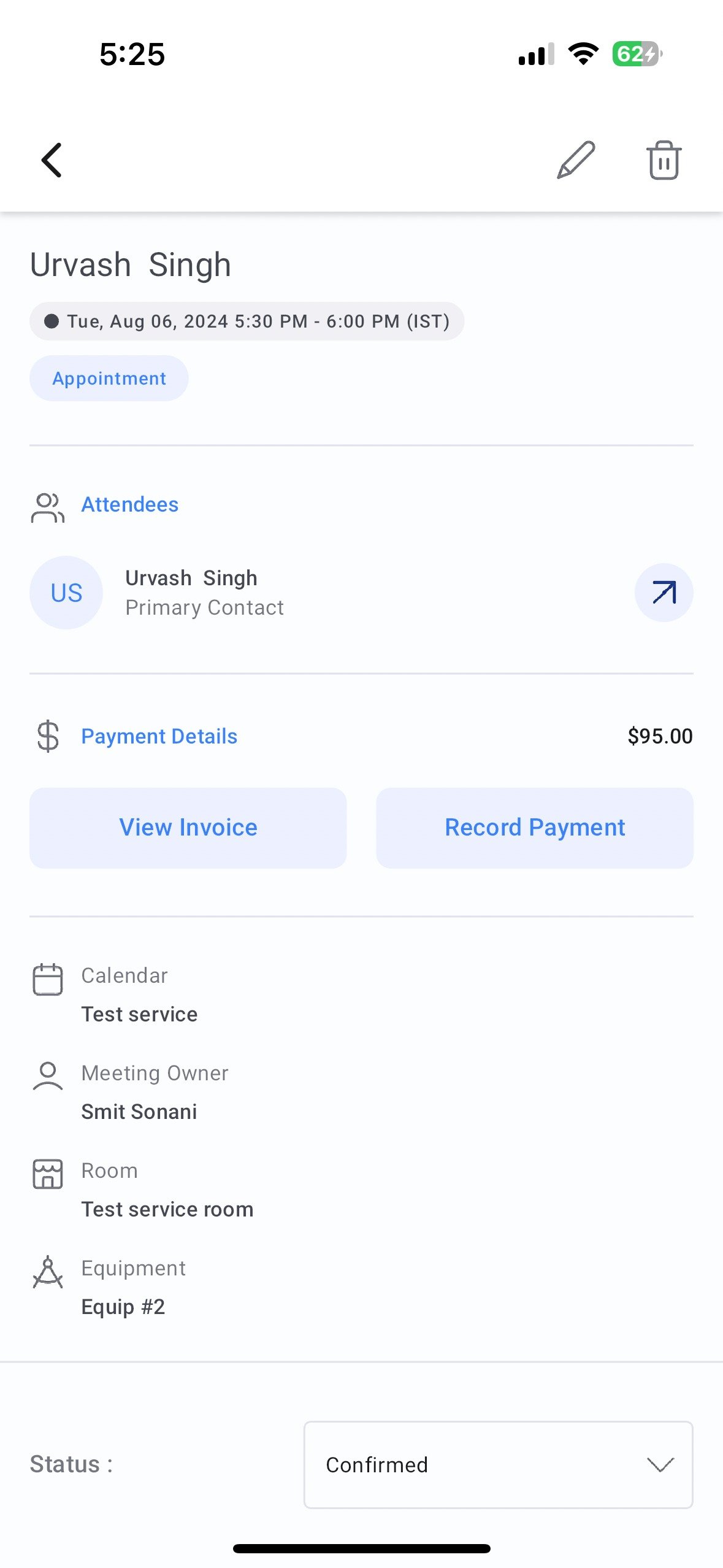 View invoice: You can now view the associated invoice of the service inside the event card. You can also edit the invoice to add the cost of additional items that may have been used or if the service time went past the alloted time.