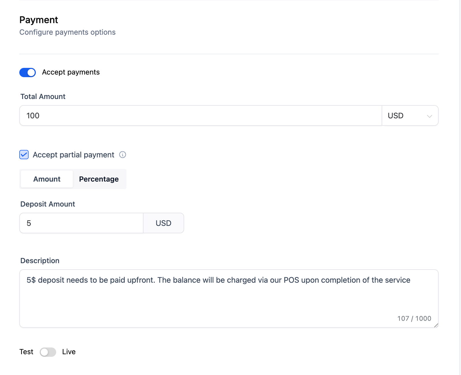 - Define your payments settings under your calendar and hit save.