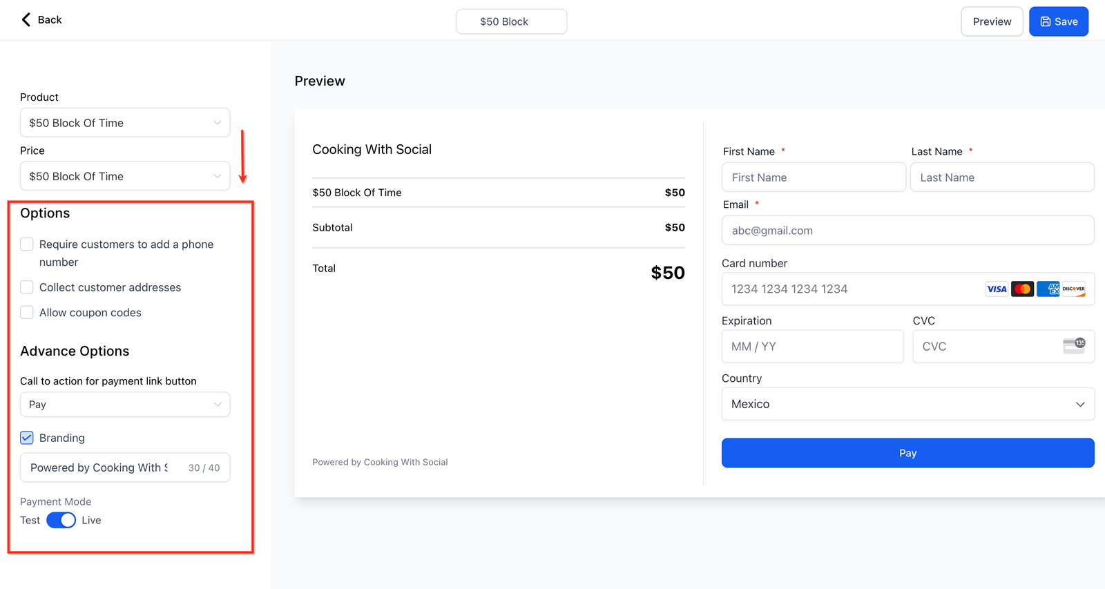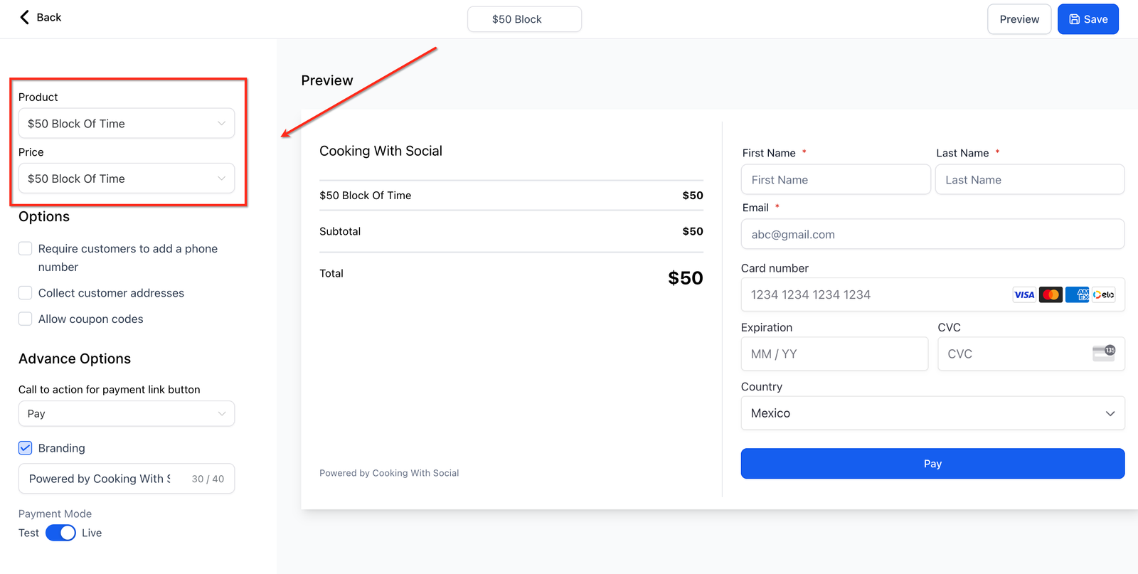 2. Give your Payment Link a Name at the top of the screen