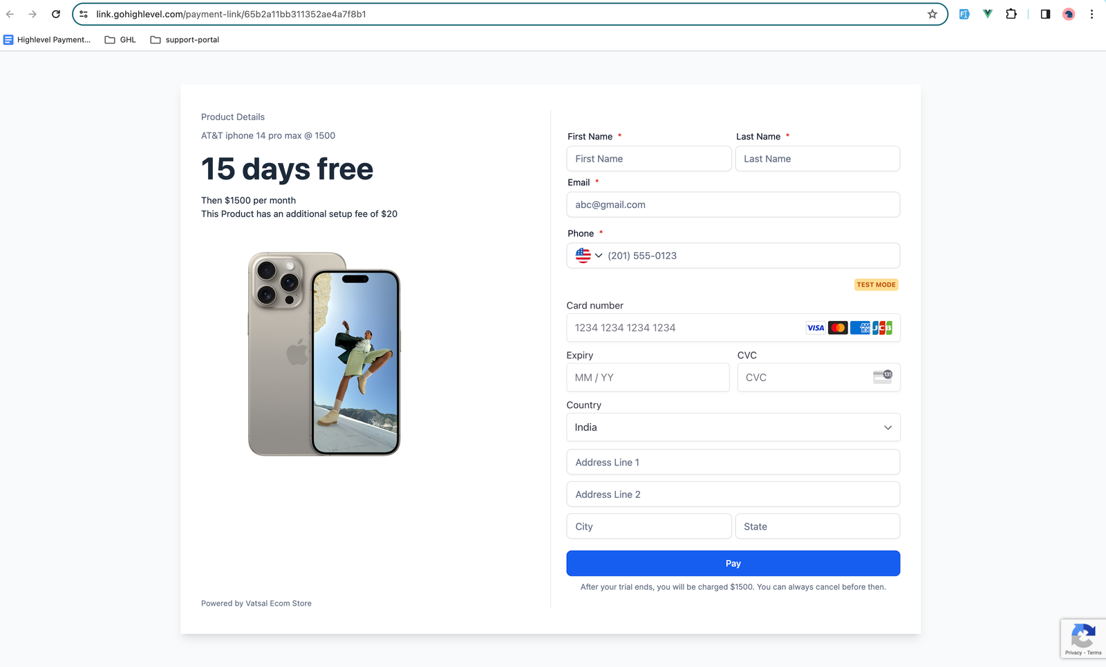 Note: Before you can create a Payment Link, you must first create a Product. To create a Product, go to Payments > Products > Create Product. Any images saved to the product will automatically display in the Payment Link