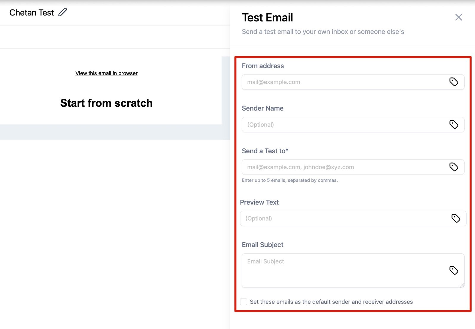 5. In the test email, Add the emails of the sender, receipt, and email subject.