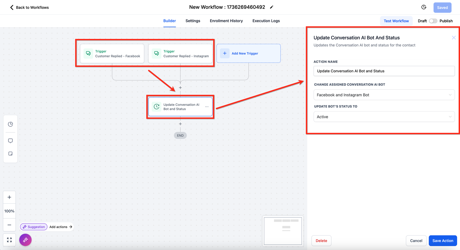 If a workflow includes Facebook and SMS steps, ensure the bot assigned can handle both platforms or designate separate bots for each channel.