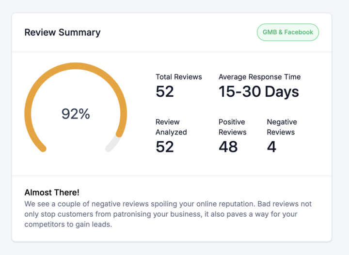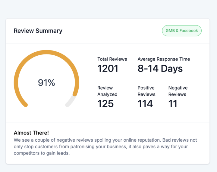Prospecting tool now includes the Average Review Response Time metric in the audit report for reviews received on Google and Facebook for prospects. This vital information is seamlessly incorporated into the marketing audit report, ensuring you have all the crucial insights about the prospect’s review management.