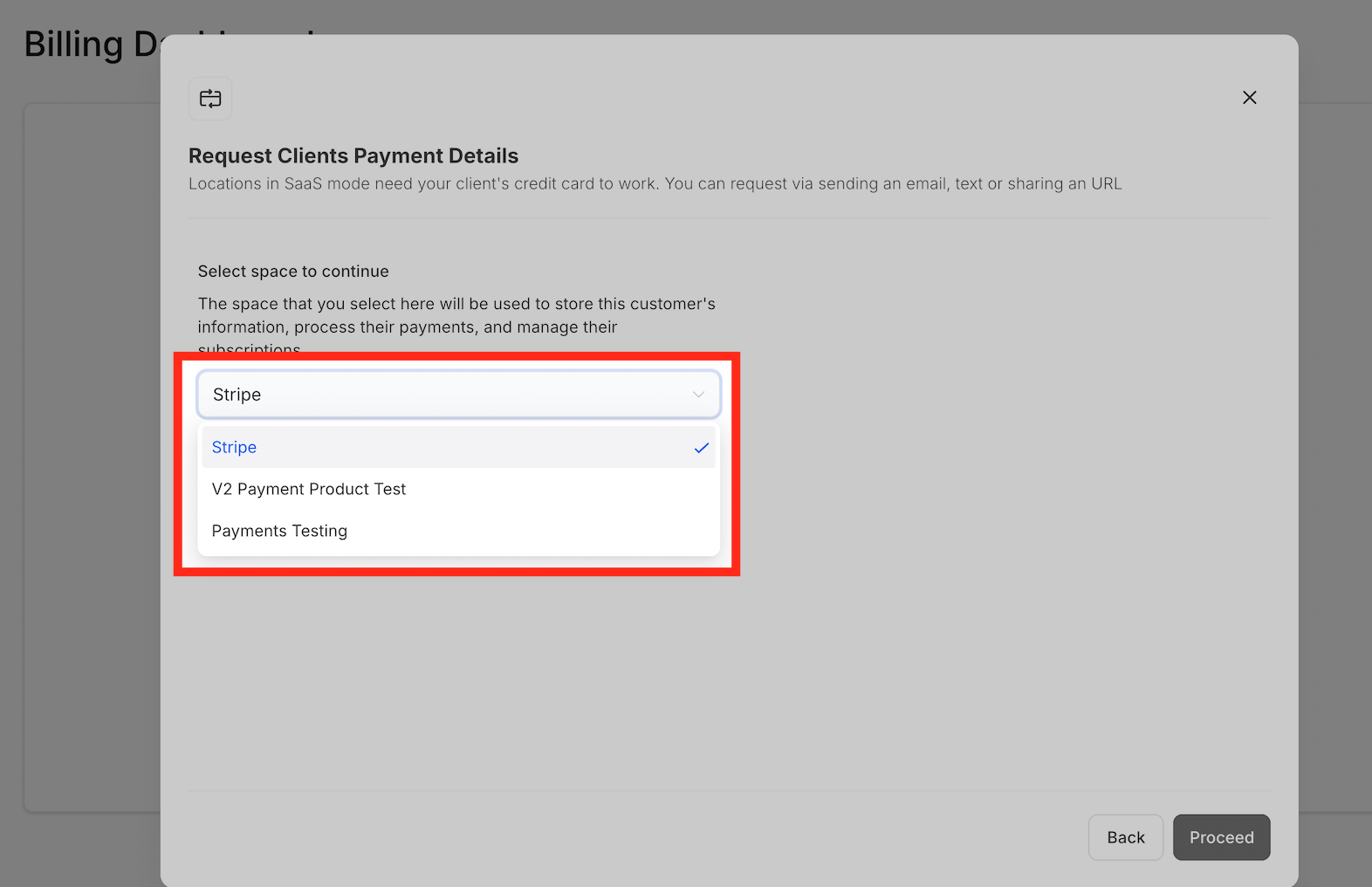 When an agency manually enables SaaS for a sub-account, they can now select which account type—either a Stripe account or an agency account—will handle the subscription and payment tasks. Once they choose, the billing system will automatically use the default payment provider from that account.