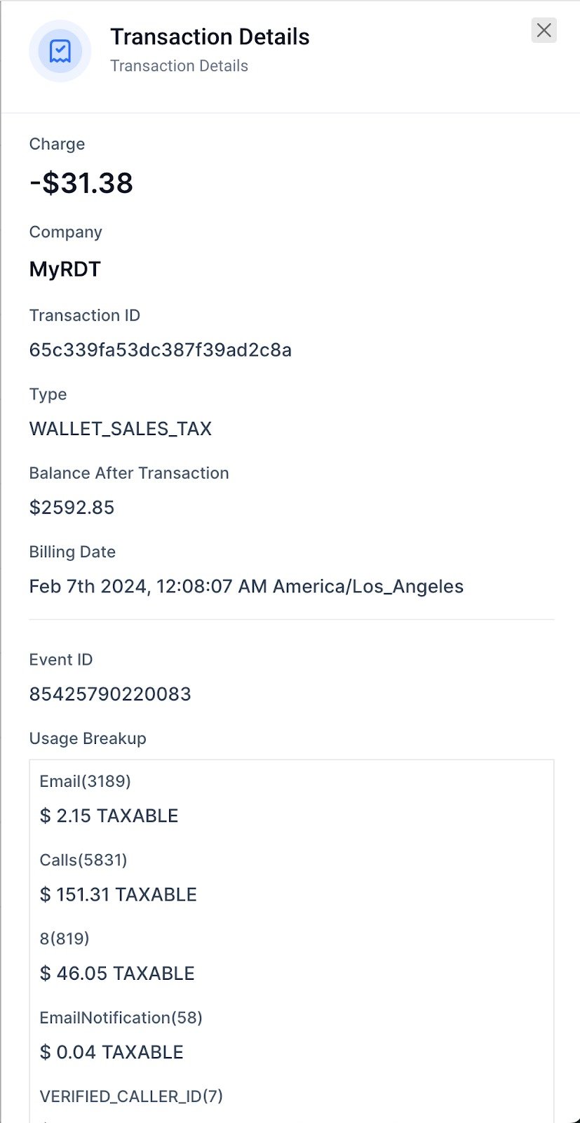 How can the customer see the details? – The customer will be able to see this information in their Wallet within the Agency. First they will need to log into their Agency, then go to Settings, then Billing, then Wallet & Transactions. Under Detailed Transactions, they will see the transaction: