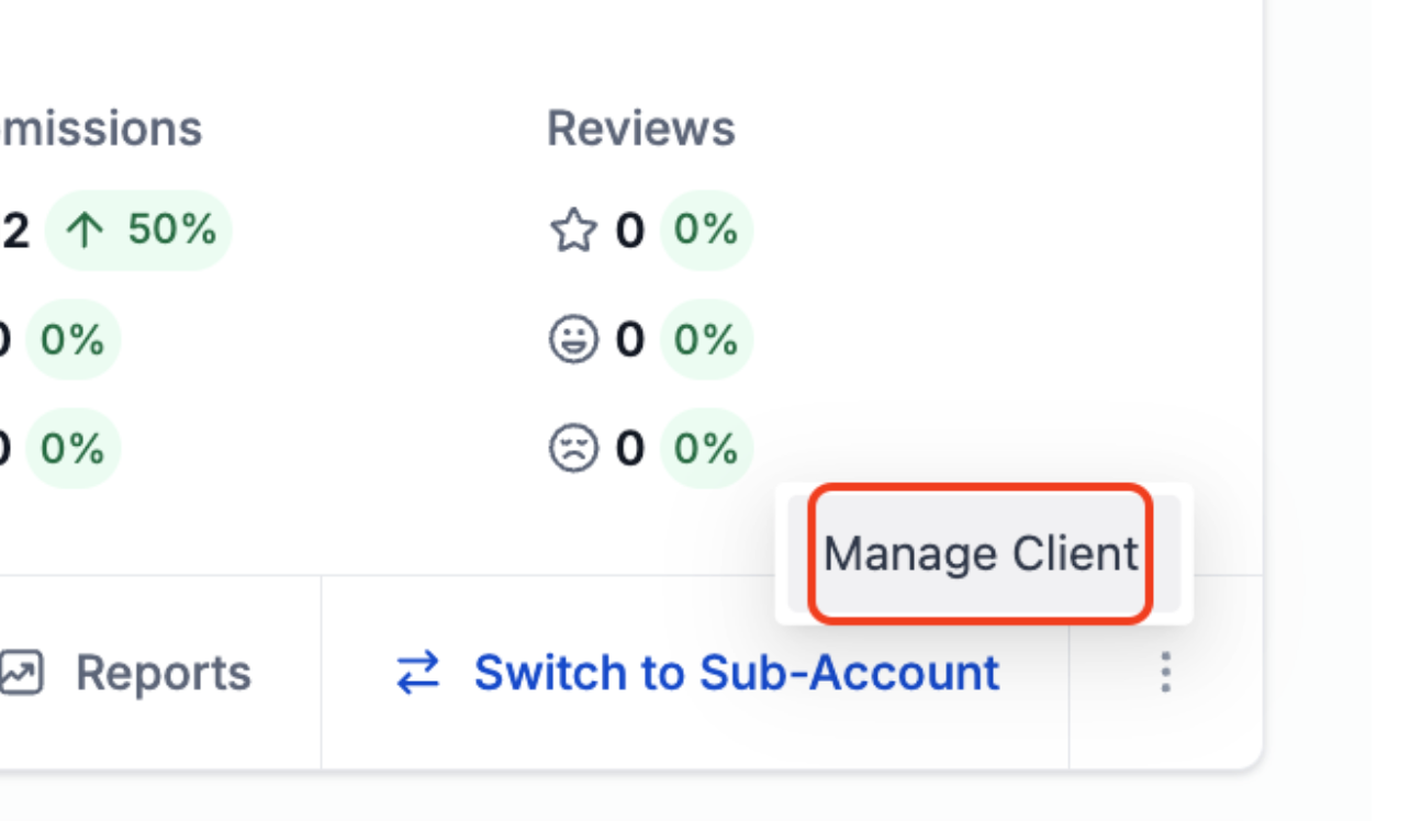 A: Switch to Agency View > Sub-accounts > Click on the three dots > Manage Client