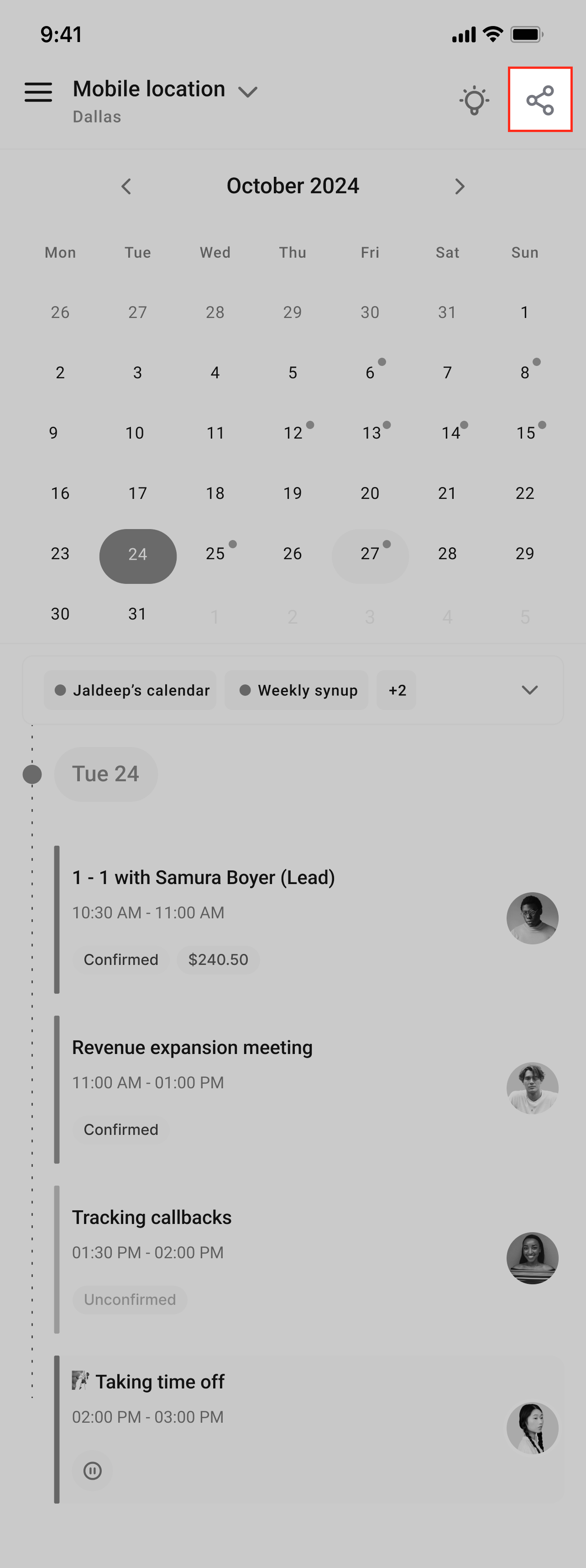 You can tap on Share, which will then copy the link of the calendar to your device’s clipboard. Feel free to share your link across your preferred communication channels!