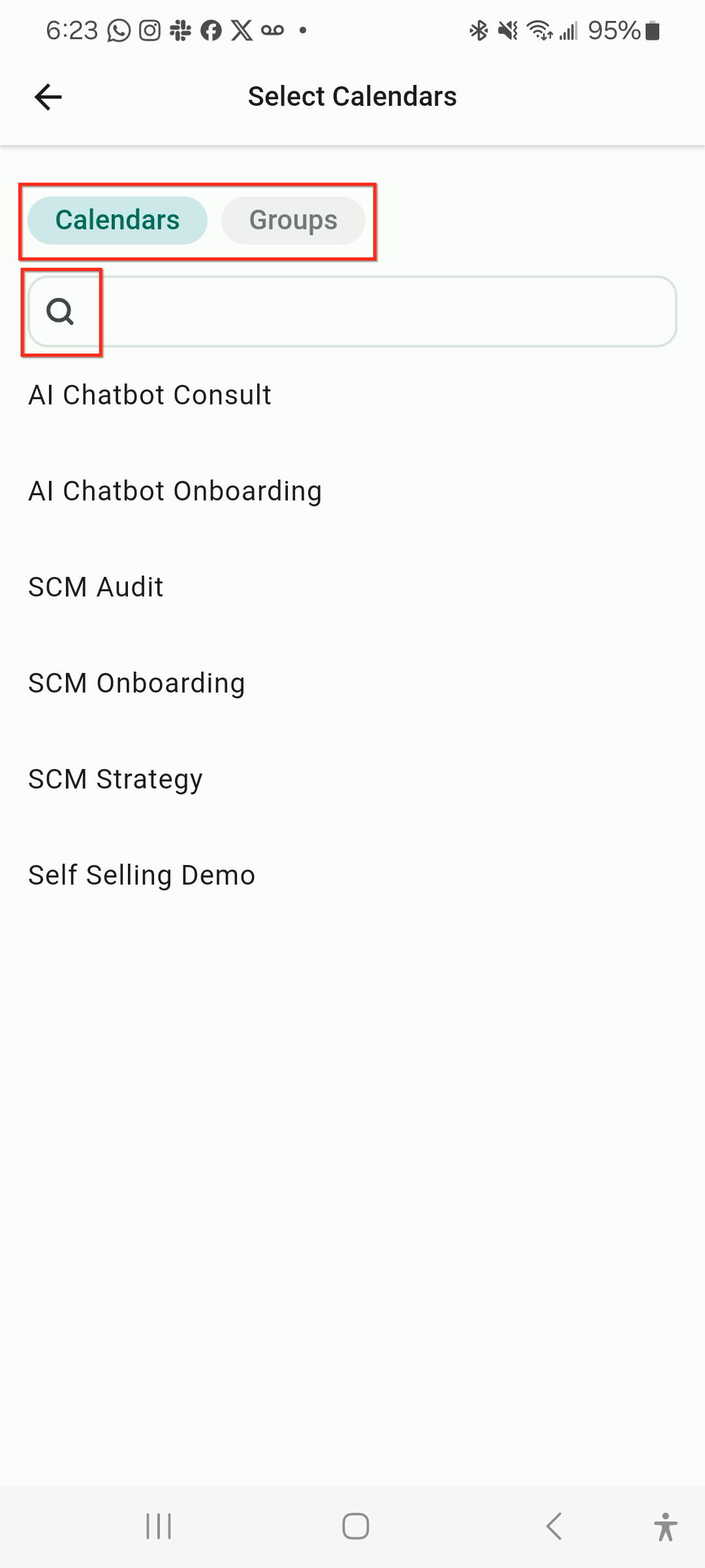 Select a Calendar or a Group. Use the search if you have a lot of calendars.