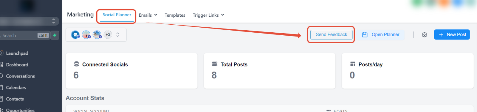 - Go to the ‘Marketing‘ tab > ‘Social Planner‘