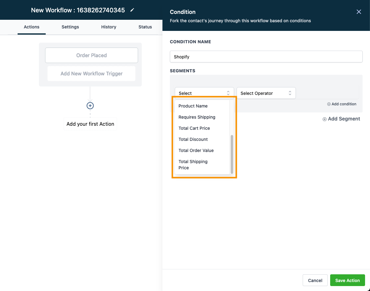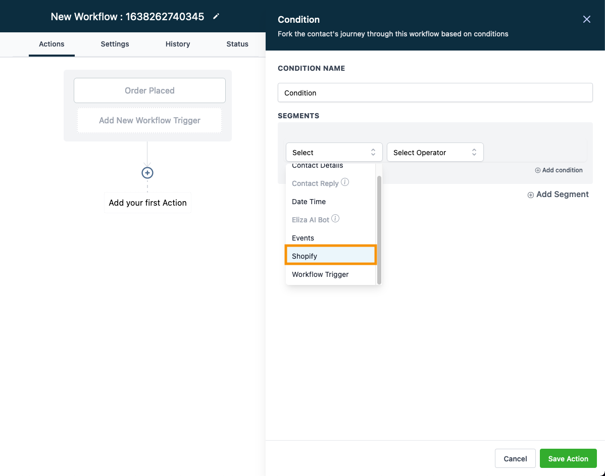 Automation > Workflow > Actions > If/Else Condition