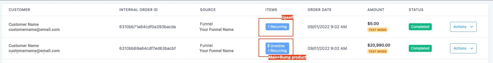Orders will now show your purchases of the main product, bump product along with quantity as one and an upsell, if any, as another order