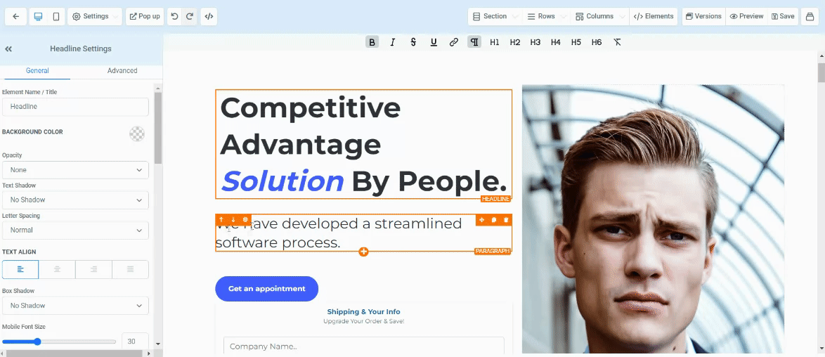 Head into the funnel builder > Click ‘Order Form‘ Element to highlight it (orange box) > In the menu settings on the left click on ‘advanced tab’ > Scroll down to ‘Main Product Options’ > Disable ‘Product Description