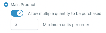 - Max quantity per order can be set between 1-999 in the funnel product page