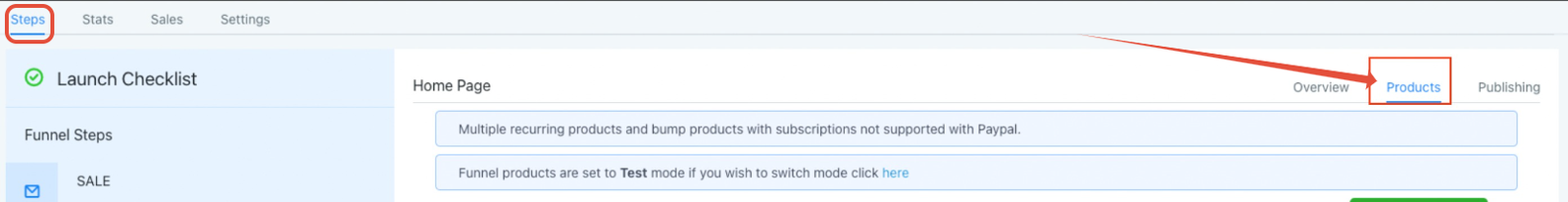 Please click on the specific funnel step where the order form is present > Click on the ‘Products tab‘.