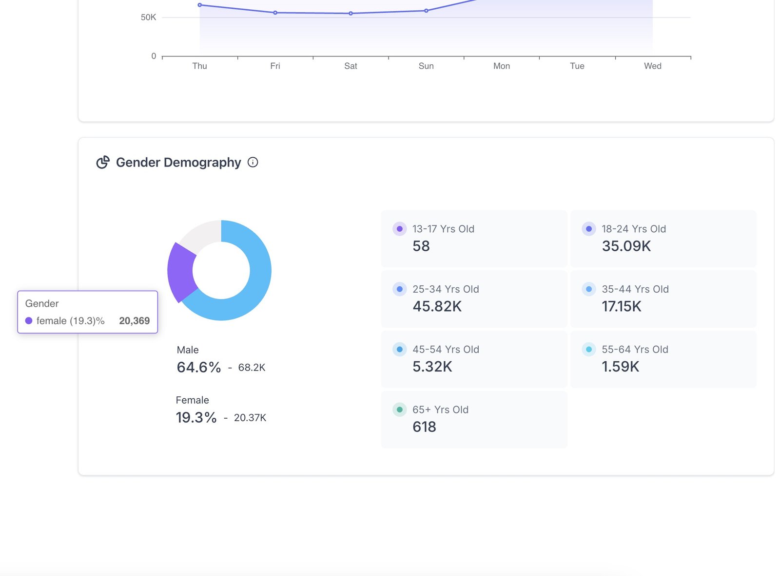 - Dive into detailed demographic data, including the gender distribution (male, female, and unknown) and age range insights.