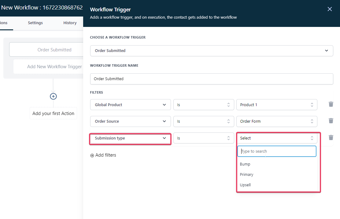 Upsell – Filters only in case of upsell purchases. If the filter is set to upsell, the trigger would not run on an order form submission (purchase of a primary/bump product)