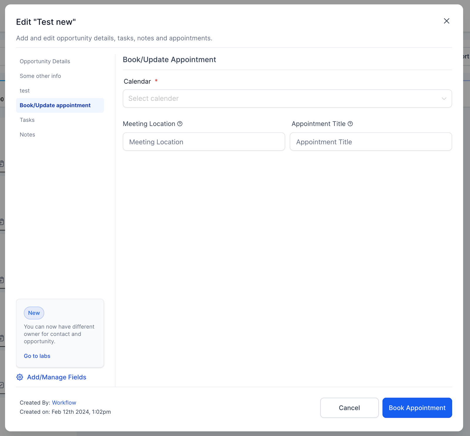- Optionally, you can add other values to this opportunity or make the opportunity owner a specific user or team member responsible for managing it.