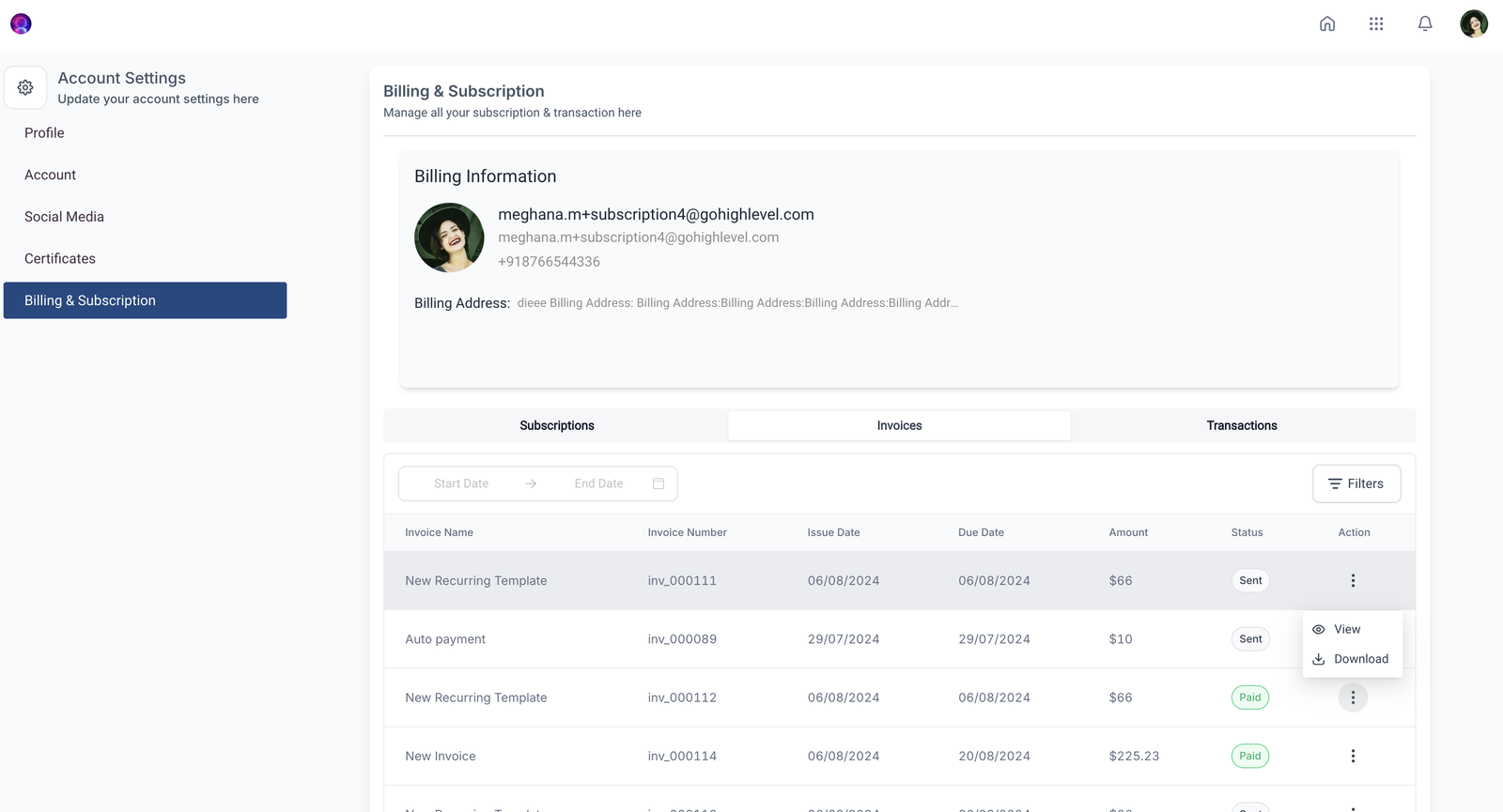 - Download Invoices: Click on any invoice to download it for your records.