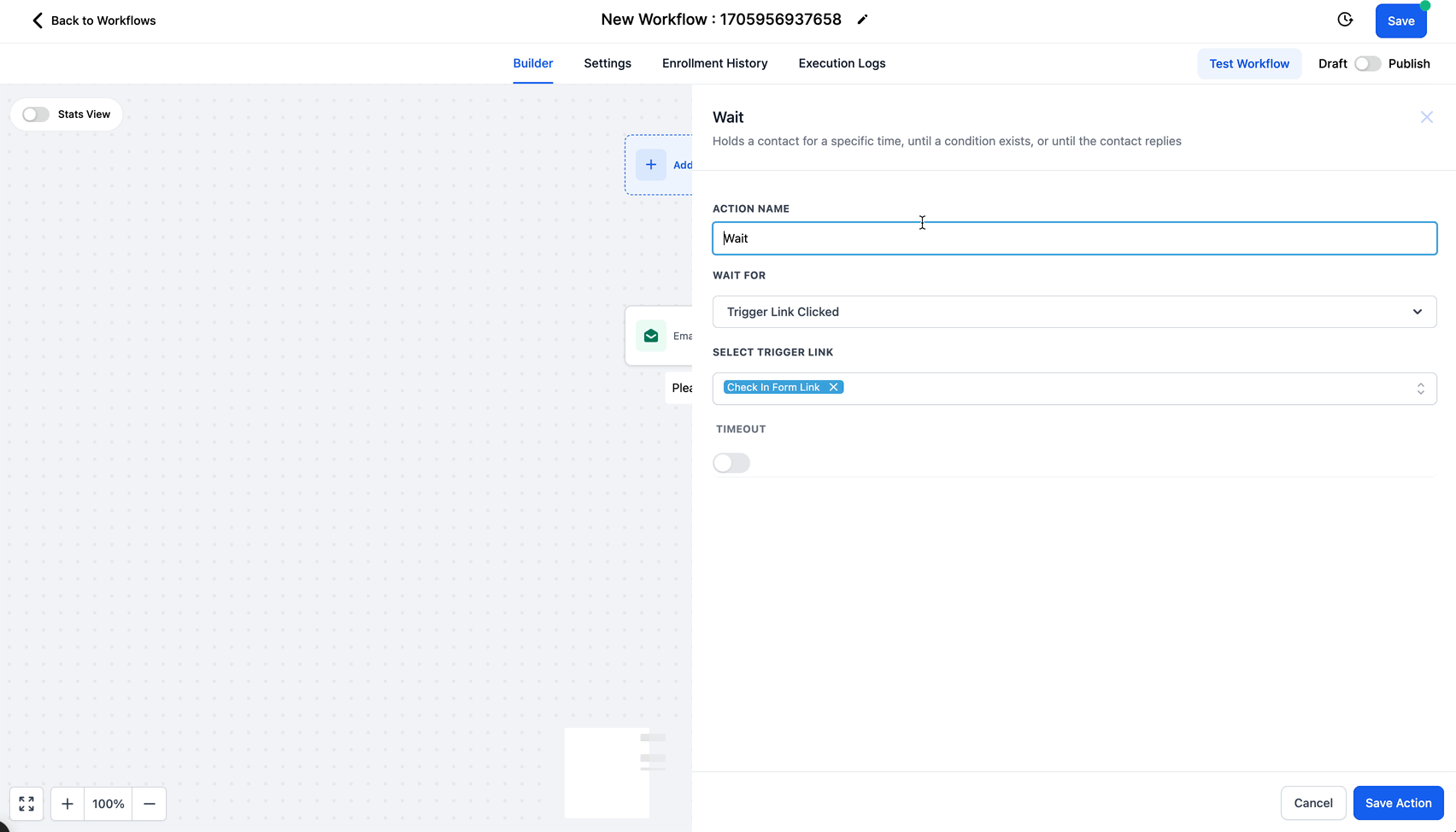 When enabled, the timeout function will skip the Wait Action (step) after the amount of time you define in the input box under the toggle (visible only when it is enabled).